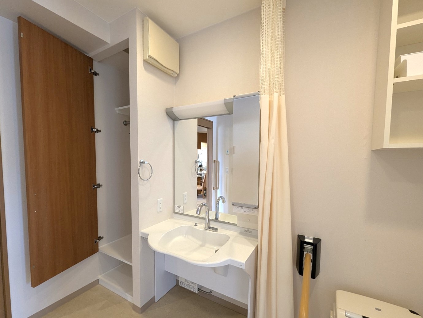 | 居室設備 | タンス、エアコン、カーテン、クローゼット、ナースコール、BSアンテナ、フラットフロア、ベッドサイドキャビネット、化粧洗面台、地上波アンテナ、引き戸式ドア(玄関)、デスク・椅子セット、浴室、温水洗浄機能付きトイレ、照明器具、車椅子対応トイレ、車椅子対応洗面化粧台、避難設備、鏡、間接照明、防火カーテン、防災設備、電動介護ベッド |