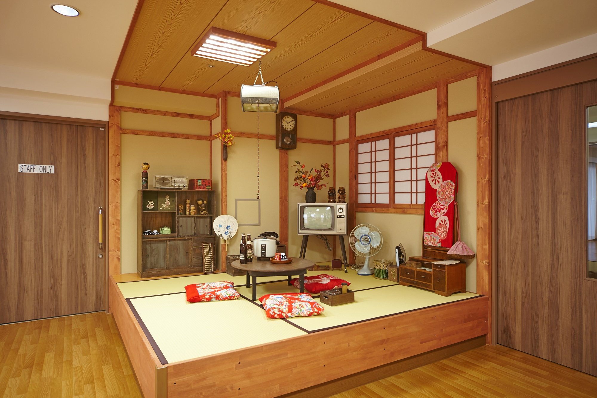 また、2階は認知症対応フロアとなっており、廊下や共用エリアは昭和30年代を復元した「回想スペース」となっております。