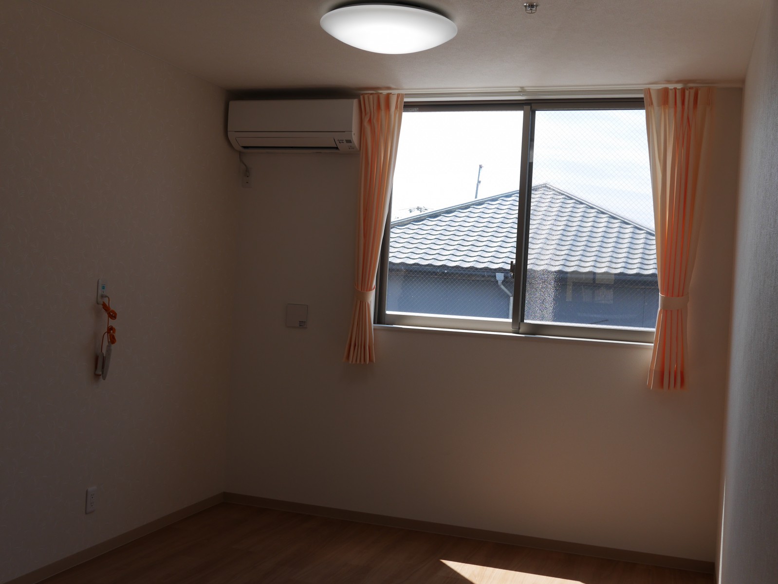 エアコンが設置されており、ご自身での空調管理もできます。お部屋はプライバシーに配慮した個室となっております。自宅に近い雰囲気の中安心してお寛ぎいただけます。