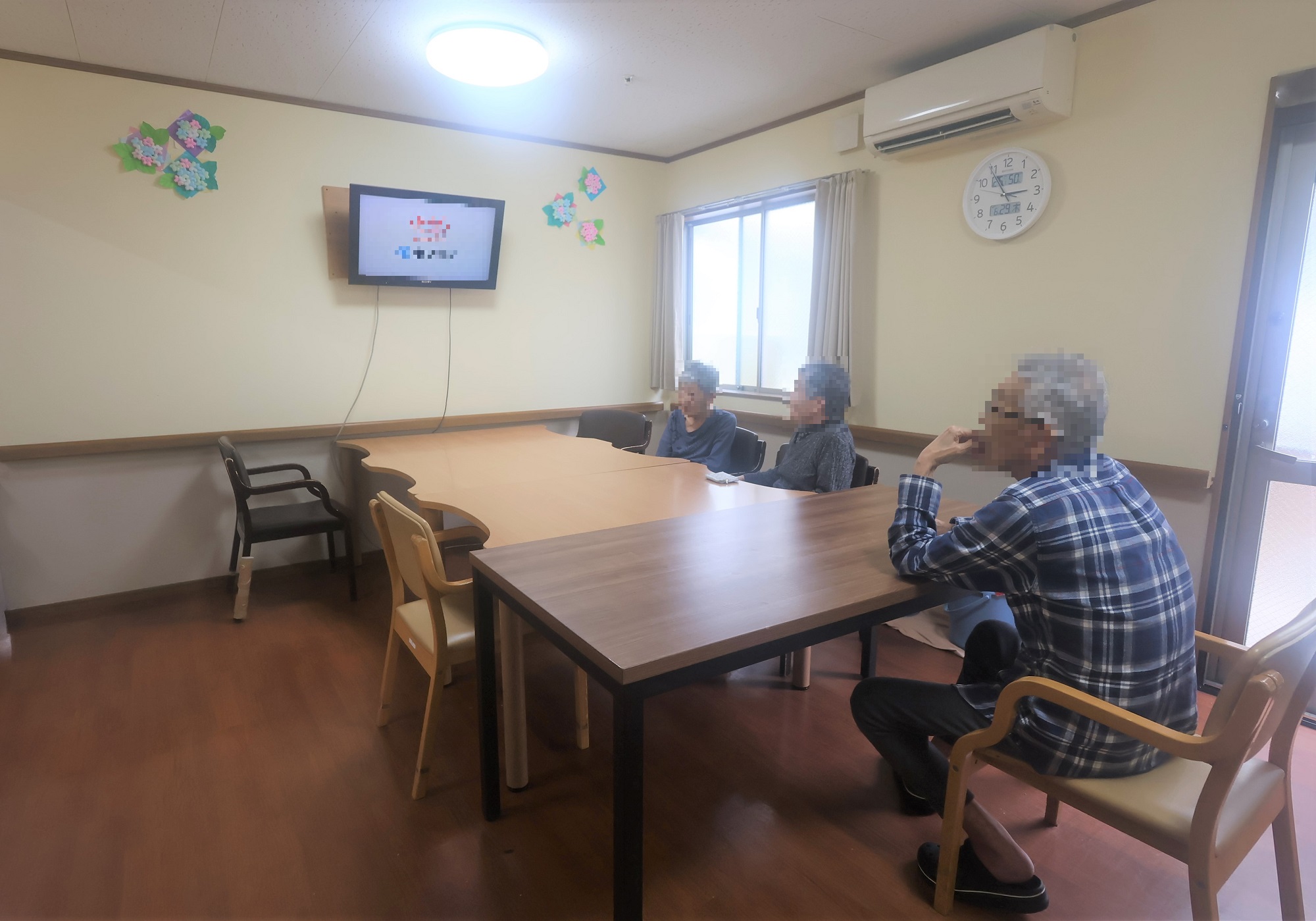共用スペースに皆さま集まられ、テレビを観たりお話をされたりして楽しまれています。