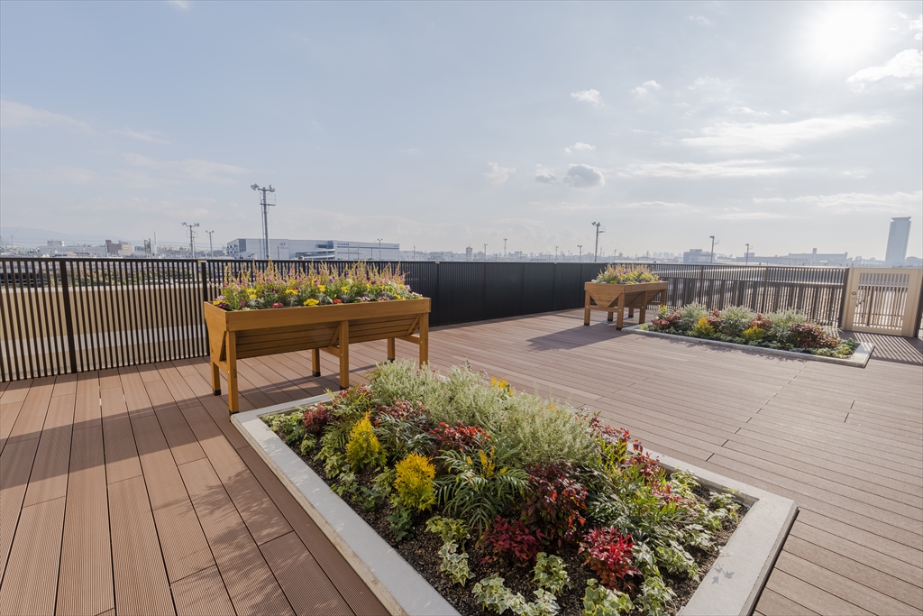 天気の良い日には外気浴をお楽しみいただける屋上庭園を設けております。自然に触れていただく事ができる癒された空間の中、リフレッシュした時間をお過ごしいただけます。