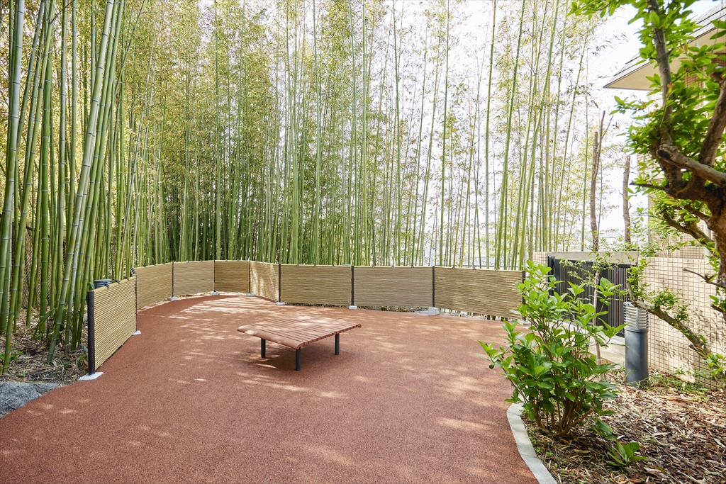 樹木に囲まれ、竹林の間を通り抜けるさわやかな風を感じながら、季節の移ろいを楽しんでいただけます。