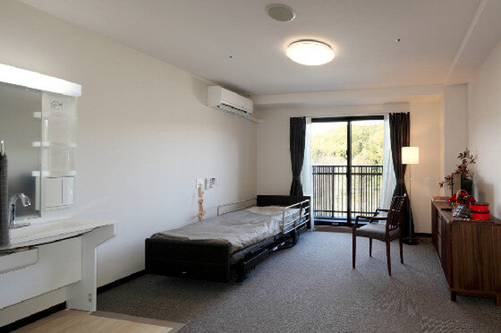 十分な広さを設けた居室で、車椅子の方もスムーズなご移動が可能です。お部屋にナースコールを完備している為、緊急時の際もすぐに対応が可能となっております。