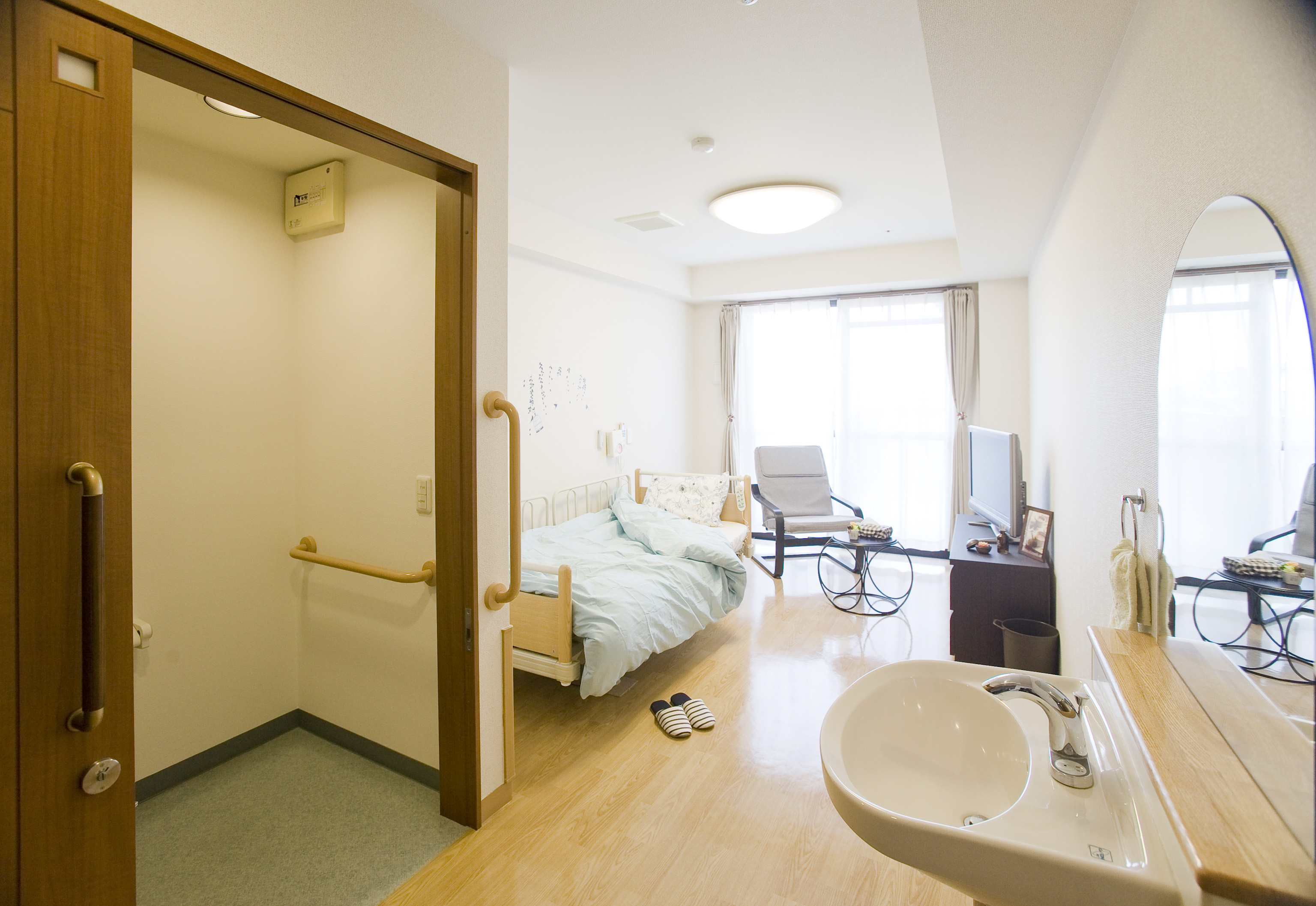 車椅子の方も快適にお過ごしいただけるゆとりのある居室です。バリアフリー設計の安心な空間で、使い勝手の良い設備が整っております。