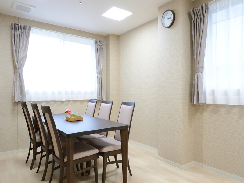 ゆったりとしたスペースで料理や会話を楽しみながら、共同生活の温もりを感じられる食堂です。日々の食事が楽しみになる空間です。