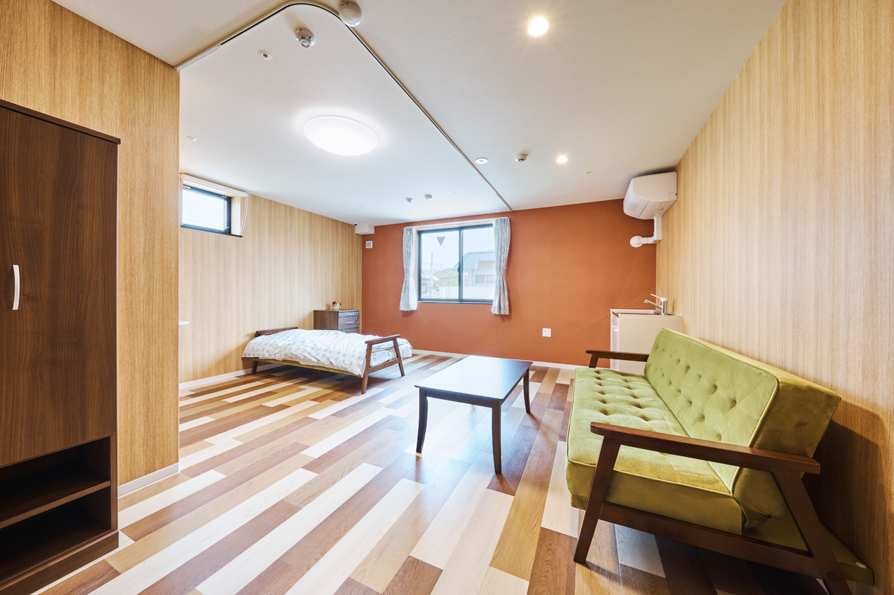 居室は広く、ベッドや家具などを設置できるスペースが十分にあります。