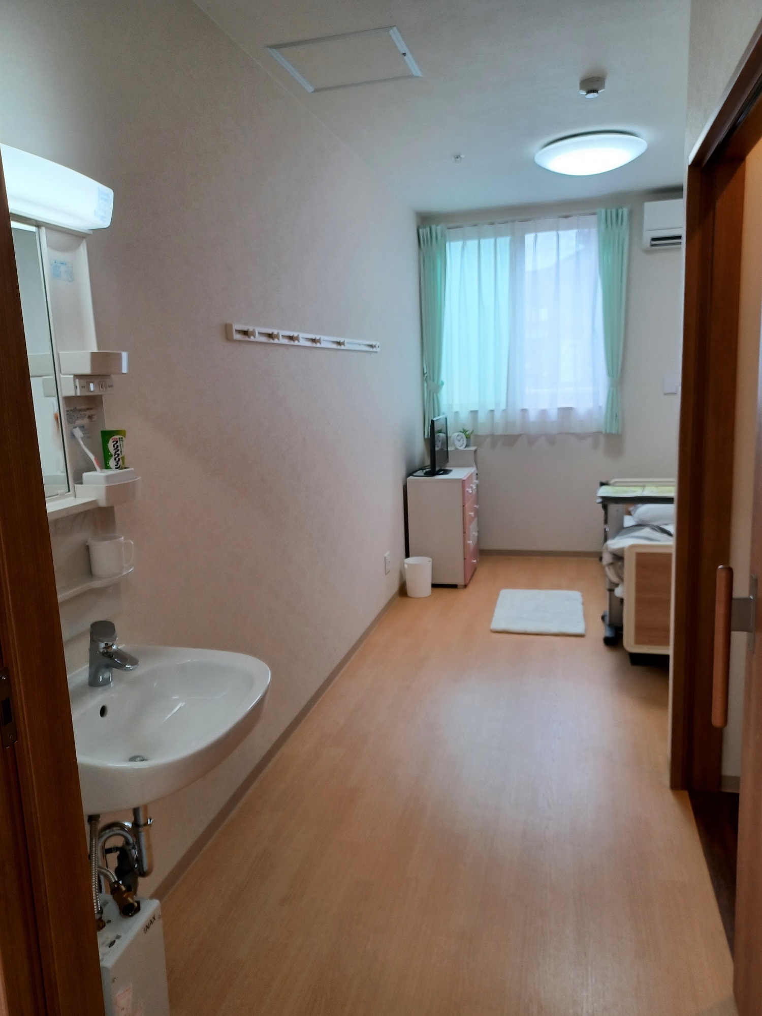 明るく清潔な個室で、プライバシーを重視した設計です。ご自身の家具を配置するスペースもあり、快適にお過ごしいただけます。