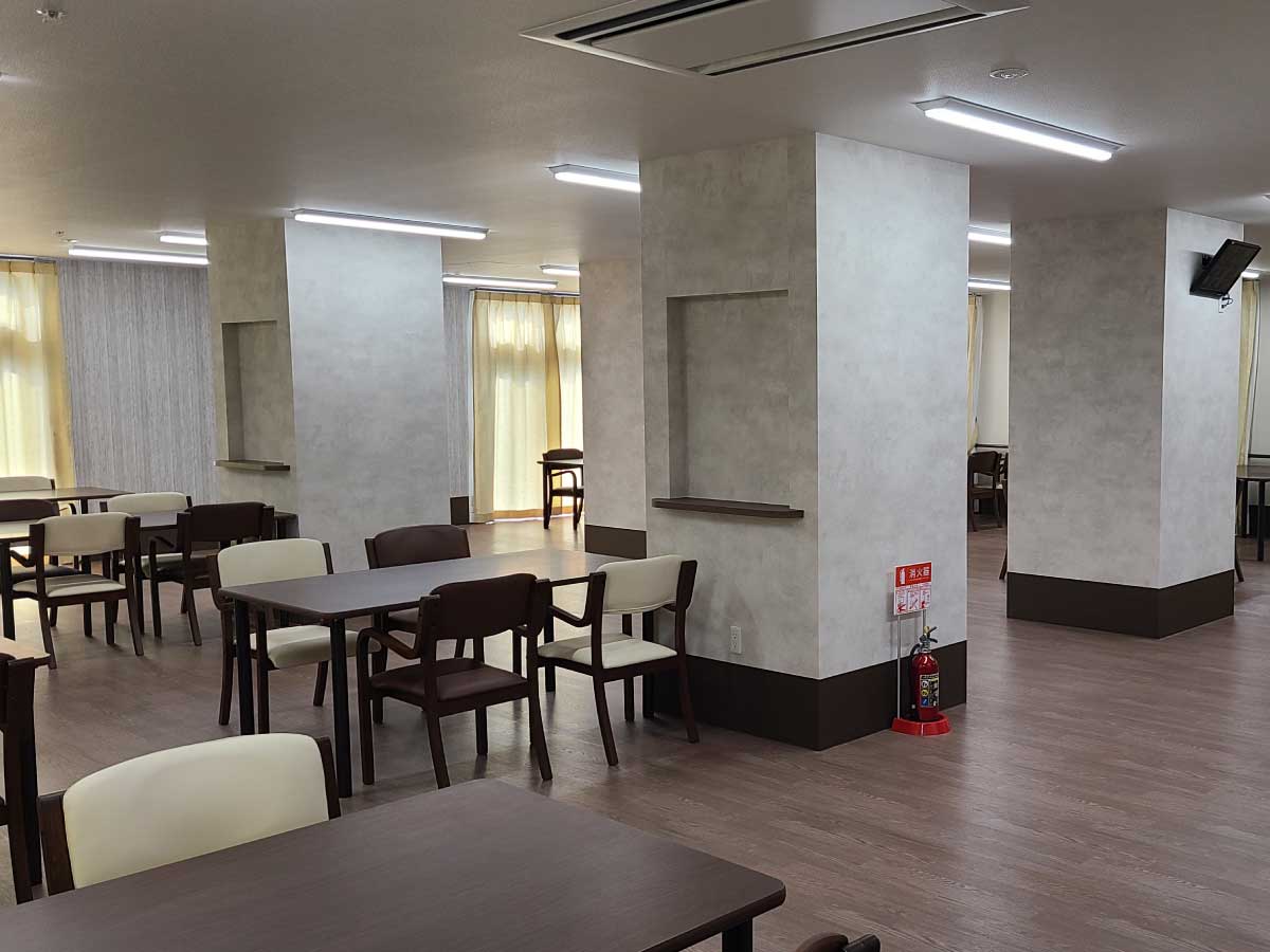 食堂&ホールは、毎日の食事を楽しんだりレクレーションなどが開催できる余裕のある広々としたスペースとなっております。