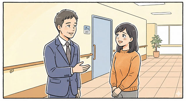 担当の生田相談員は、ご本人が「介護保険負担限度額認定証」を所持していることに着目。民間施設だけでなく、この認定証で居住費や食費を抑えられる「特別養護老人ホーム(特養)」をあえて選択肢に含めて提案しました。また、入居の壁となる健康診断を系列病院で迅速に受診できるよう手配し、お問い合わせから約2週間という異例の速さで準備を整えました。