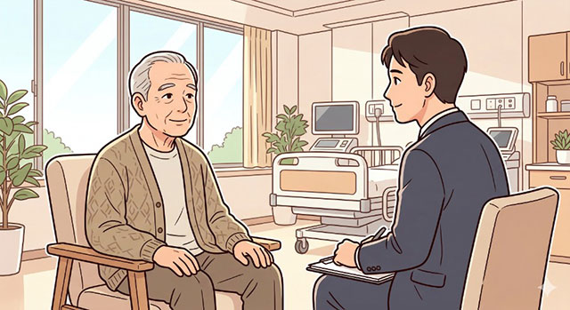 病院・家族・相談員の緊密な連携により、二度目の面談は非常に落ち着いた様子で臨むことができ、無事に入居が決定しました。現在は専門ケアのもと、適切なインスリン管理を受けながら大きなトラブルもなく穏やかに過ごされています。長男様からは「一度断られた時は絶望しましたが、病院にまで働きかけて道を作ってくれたおかげで、家族も救われました」と感謝の言葉をいただきました。