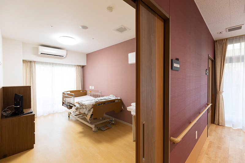 収納家具は扉付きのものを選ぶと見た目がすっきりし、中身が見えない安心感があります。ナースコールの利用を妨げない位置に家具を設置しましょう。